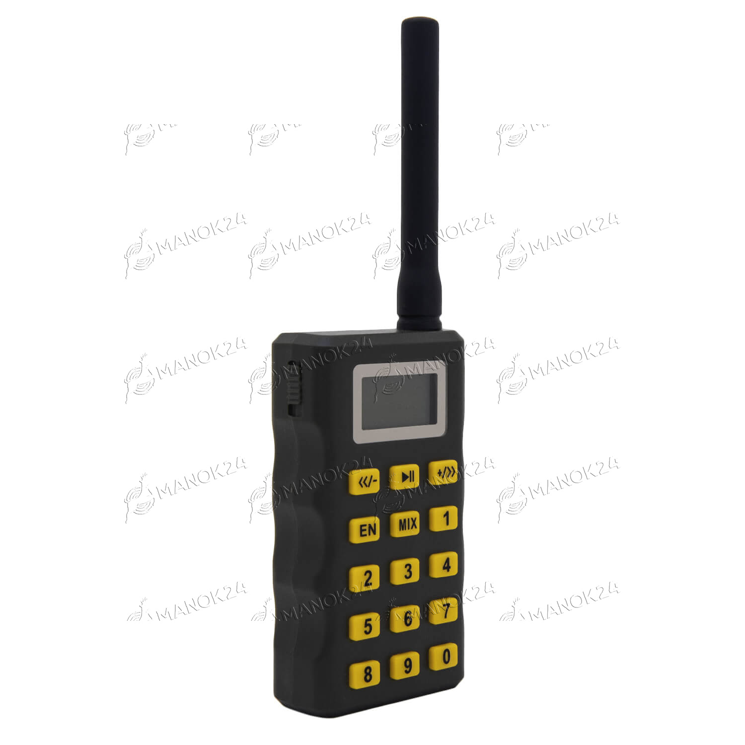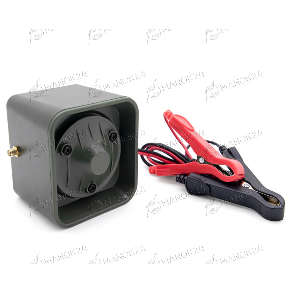 Один из самых мощных электронных манков оборудован влагозащищенным динамиком мощностью 50 Вт с возможностью подключения дополнительного динамика. Встроенная память прибора содержит 180 голосов различных животных и птиц. Предусмотрена загрузка дополнительных библиотек звуков. Панель манка оборудована дисплеем разрешением 128х64, на котором отображаются текущие настройки и кнопками управления. Управлять манком также возможно пультом дистанционного управления на дистанции до 500 метров. Прибор оснащен портом Mini-B USB, таймером и индикатором заряда батареи. Питание манка осуществляется от внешнего аккумулятора 12 вольт.