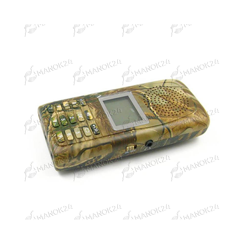 Портативный электронный манок в камуфлированном корпусе. Легкий манок очень удобен для ношения на одежде и предназначен в основном для ходовых охот на боровую дичь или для охоты с подхода. Мощность встроенного динамика 3 Вт, имеется возможность подключения дополнительного динамика мощностью 3 Вт. В комплекте с манком пульт дистанционного управления с дальностью действия 400 метров.