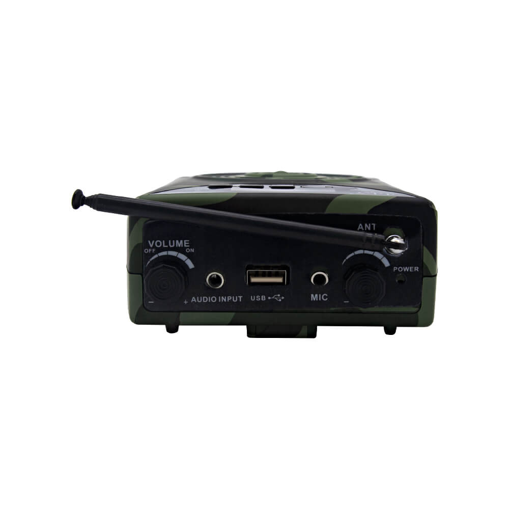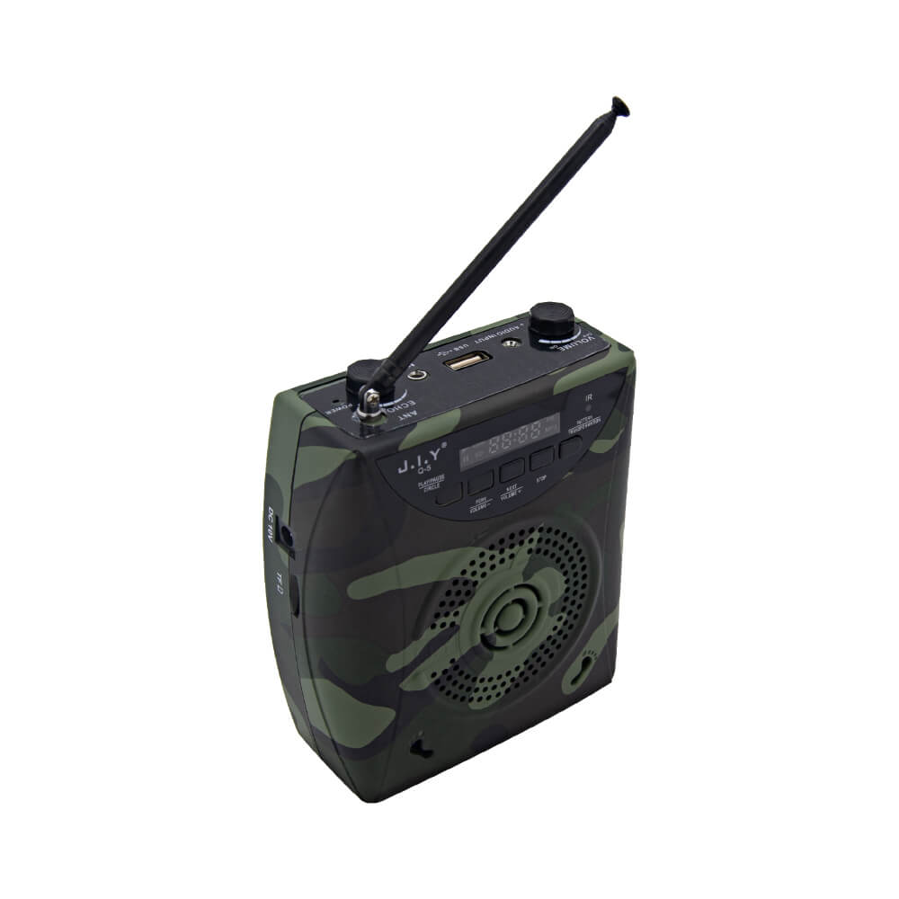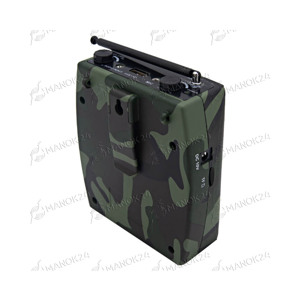 Надежная и простая в настройках и эксплуатации модель. На верхней и передней гранях корпуса расположен пульт с дисплеем и ручками управления. Корпус прибора защищен от влаги и пыли. В корпус интегрирован динамик мощностью 35 Вт, предусмотрена возможность подключения второго выносного динамика к пульту проводом. В комплекте ПДУ, работающий на расстоянии до 200 метров. Встроенный аккумулятор позволяет прибору работать непрерывно в течение 7 часов. Для загрузки коллекций звуков предусмотрена установка карты памяти и порт USB.